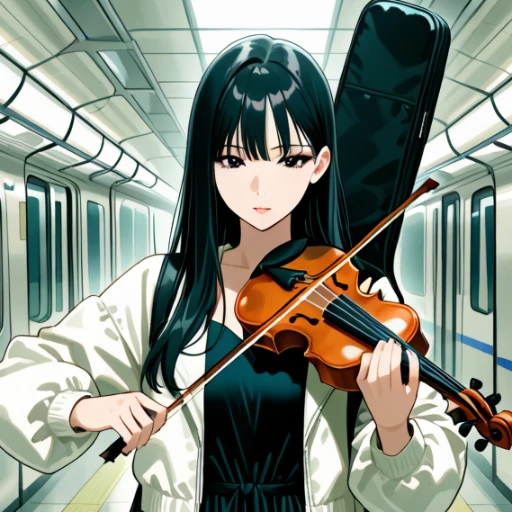A street musician who plays violin in the subway. She plays for strangers but dreams of playing for someone who stays.